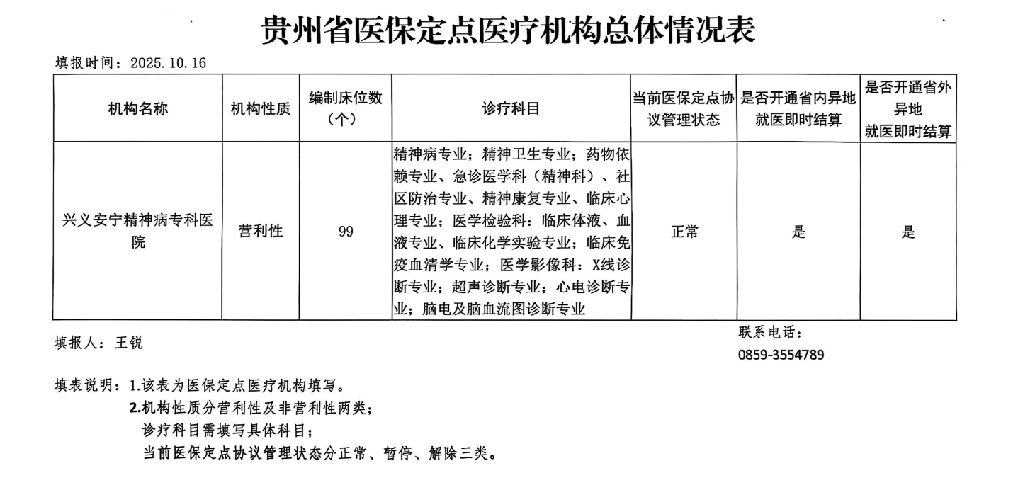 兴义安宁精神病专科医院2024年医保服务情况信息公示